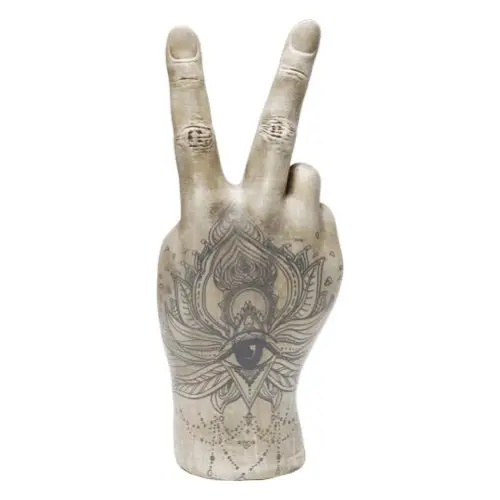 deco entree style eclectique Statuette main V tatouage oeil en polyrésine H36