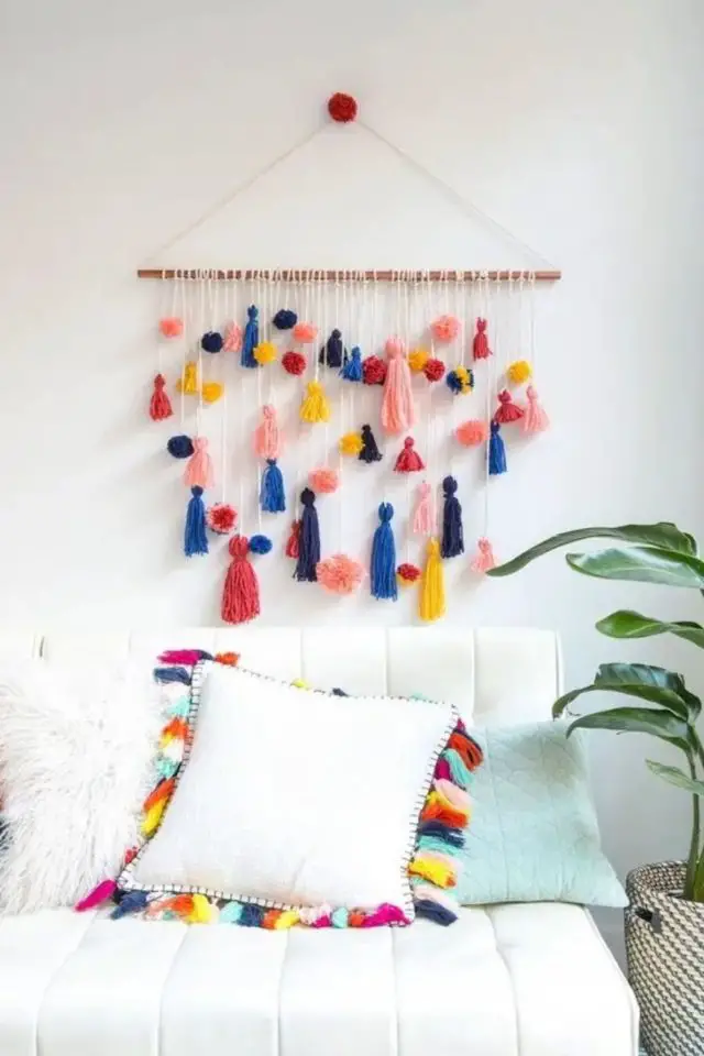 - Créer une déco murale avec des pompons colorés