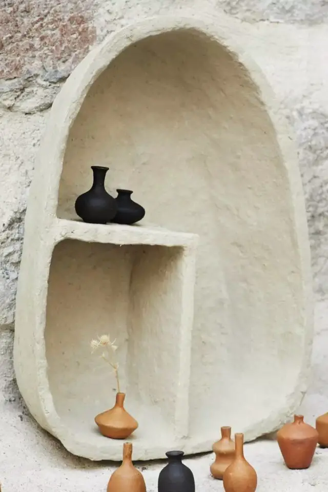 - De petites étagères avec des niches arrondies avec un côté qui me rappelle les intérieurs méditerranéens;