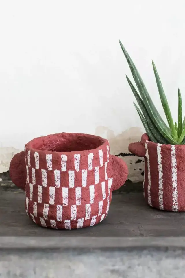 - Des cache-pots pour dissimuler le pot en plastique moche de vos plantes. Cependant, j'aime l'idée que le cache-pot en papier mâché a tendance à s'effacer au profit de la plante verte qui se trouve à l'intérieur.
