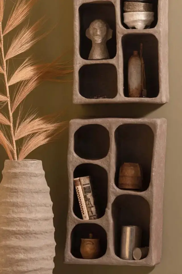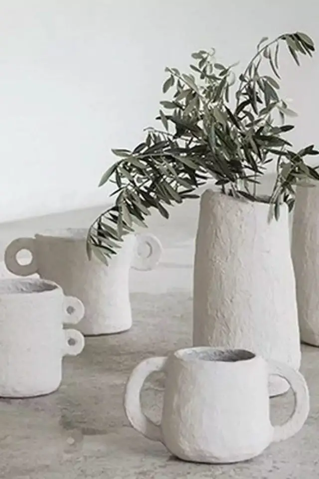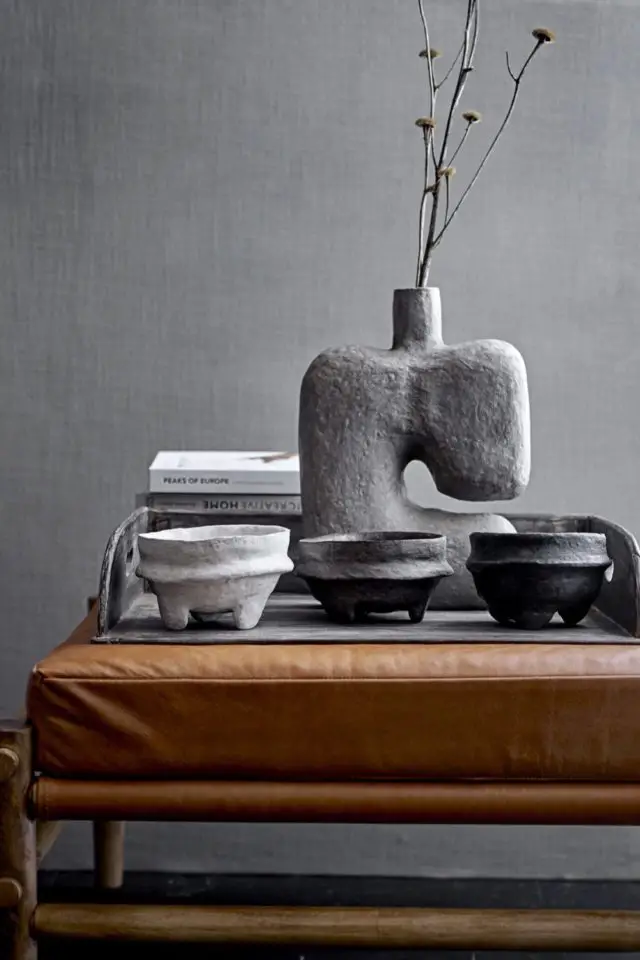 Le papier mâché s'invite dans plusieurs styles. On le retrouve aussi bien dans un décor slow living où on s'entoure de moins d'objets mais ils sont choisis avec soin. On peut aussi l'intégrer dans un décor bohème chic. Le papier mâché dégage une idée d'authenticité qui va bien avec l'ambiance bohème. Et on peut aussi l'intégrer dans un décor bold, tout en rondeur. C'est un matériau facile à travailler et qui offre des objets tout en courbes.