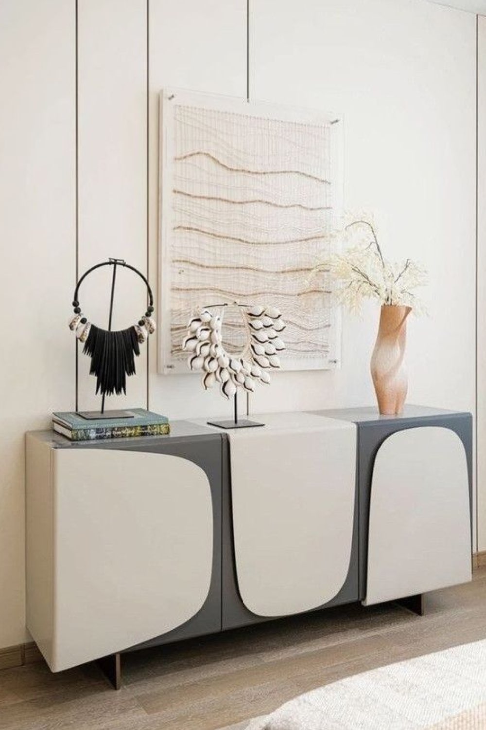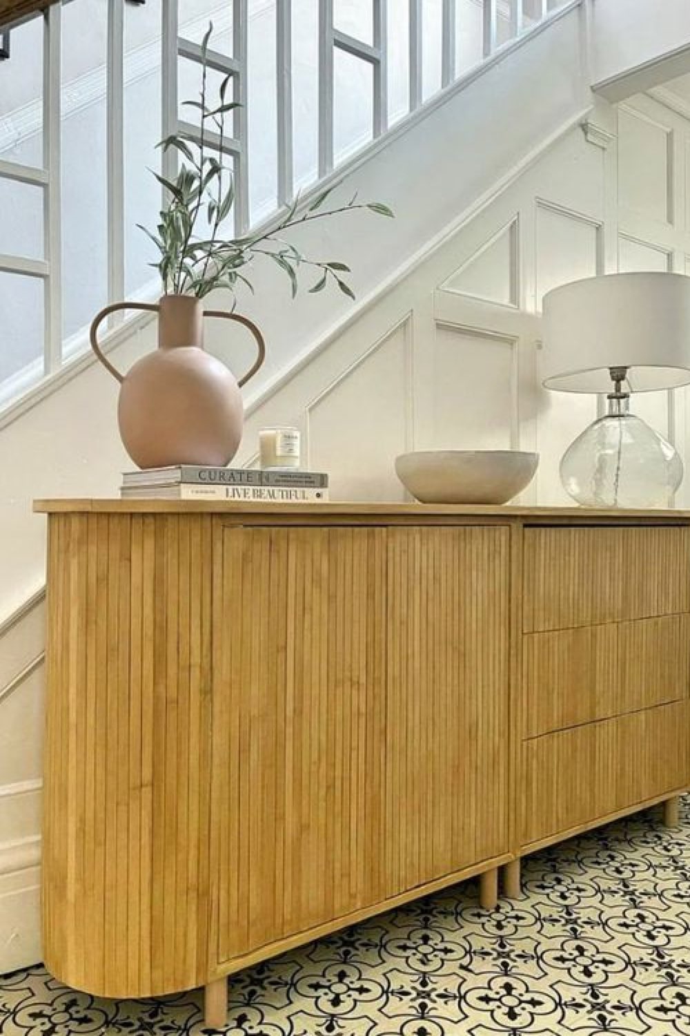 10 • Relooker un meuble télé avec des demi-ronds sombres