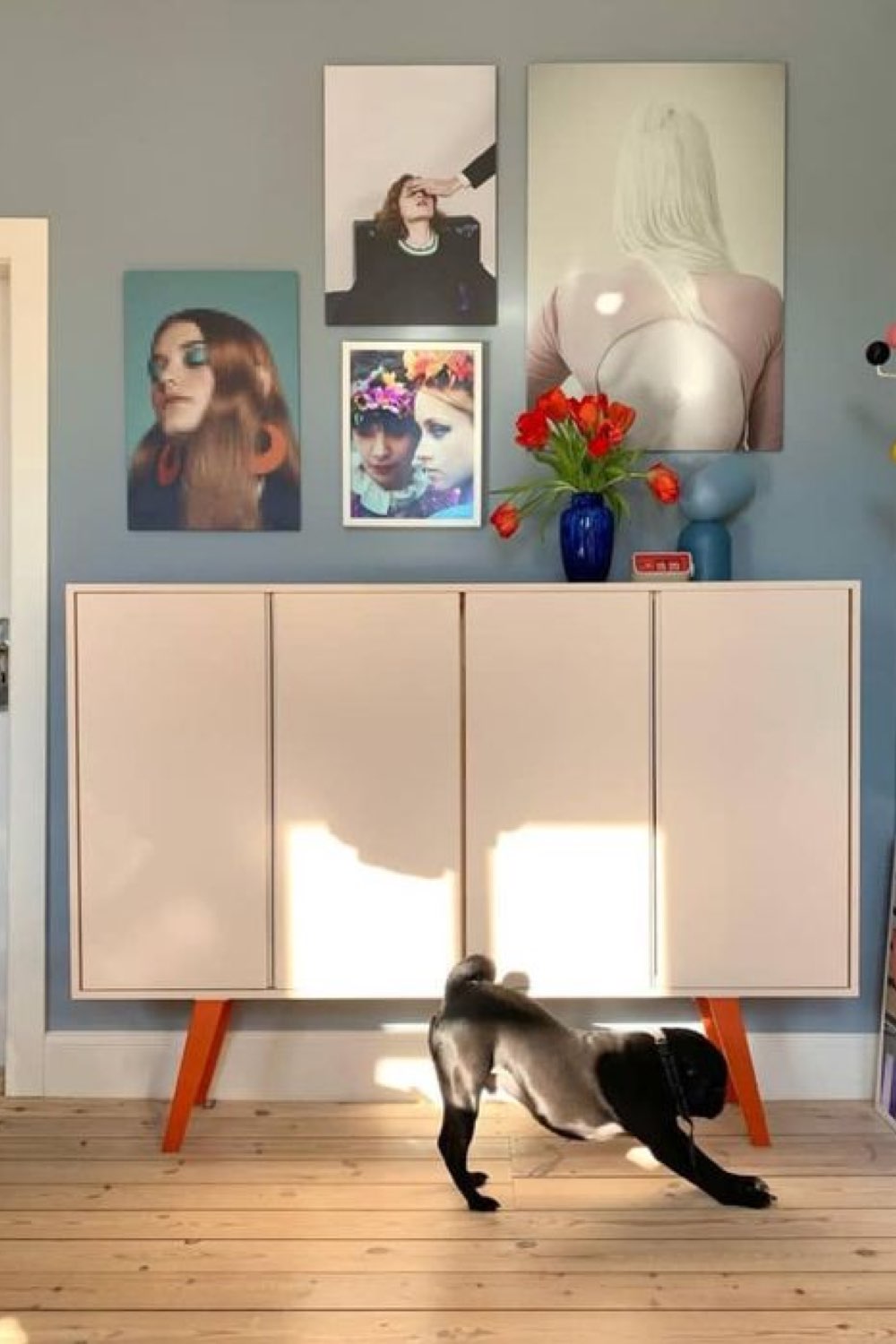 Un autre exemple du pouvoir des détails pour customiser un meuble et lui offrir un look plus design. On a un meuble peint dans une couleur neutre et il est sur-élevé par des pieds colorés. Simple, efficace. Parfait pour donner un coup de nouveauté dans une pièce sans avoir à bricoler des semaines et des semaines. Ici, ce sont des pieds coniques qui ont un petit air vintage et qui ont été peints au préalable.