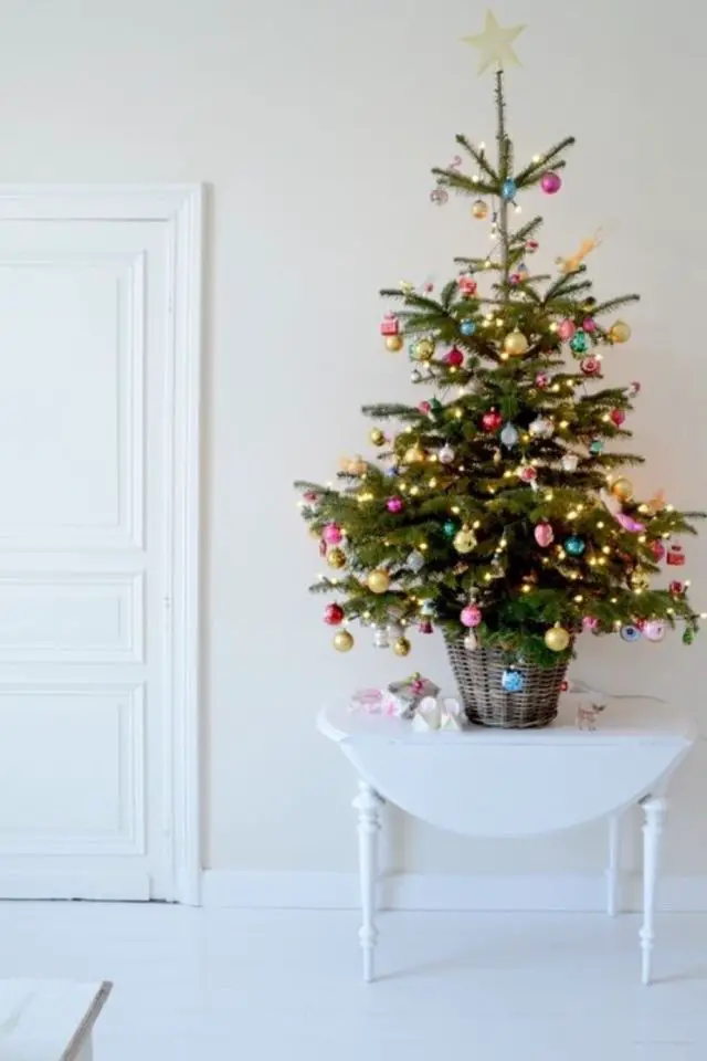 Il y a vraiment quelque chose de très joyeux avec les sapins multicolores. Boules de toutes les couleurs, rubans et déco en papier de soie sont de bons alliés pour réussir ce type de décor.