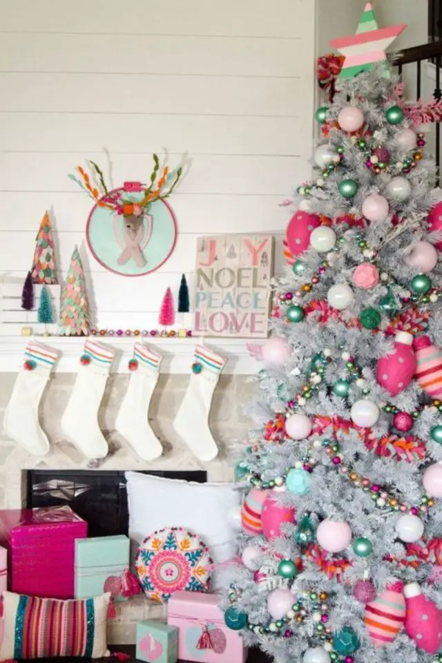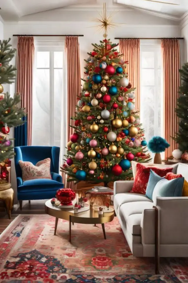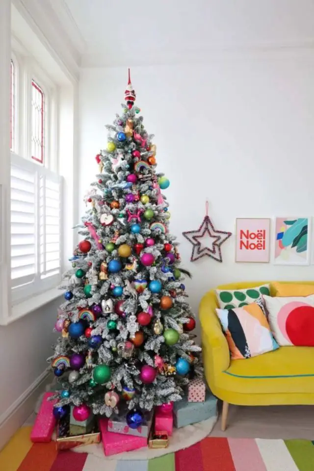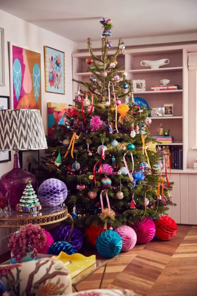 sapin noel decoration interieure hyper coloré maximaliste tendance 2024