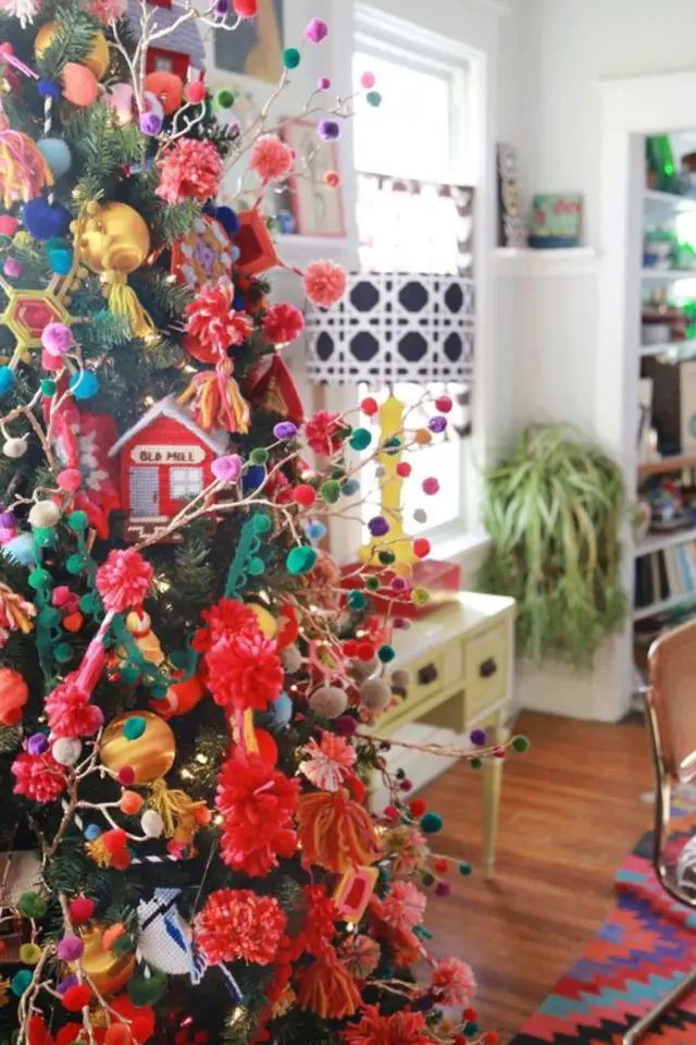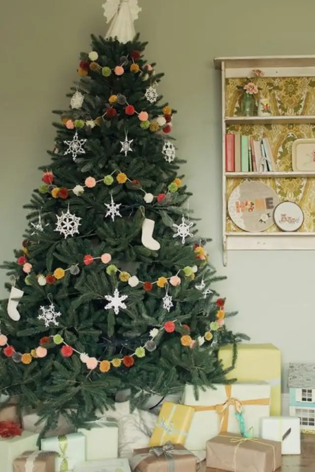 sapin noel decoration interieure guirlande pompon à faire soi même