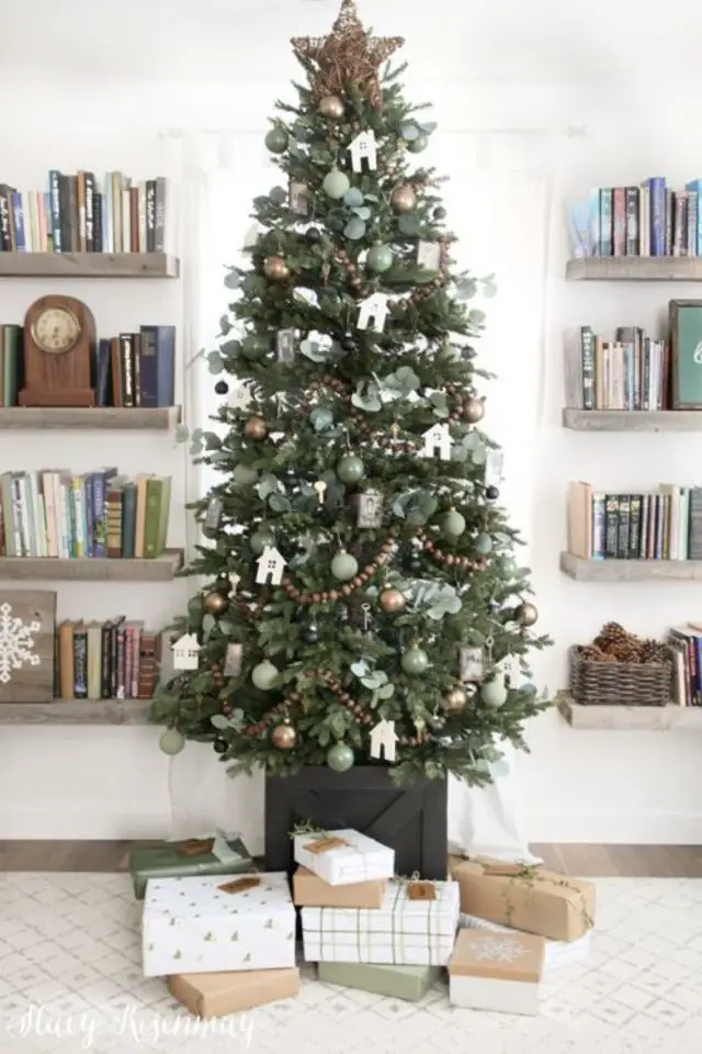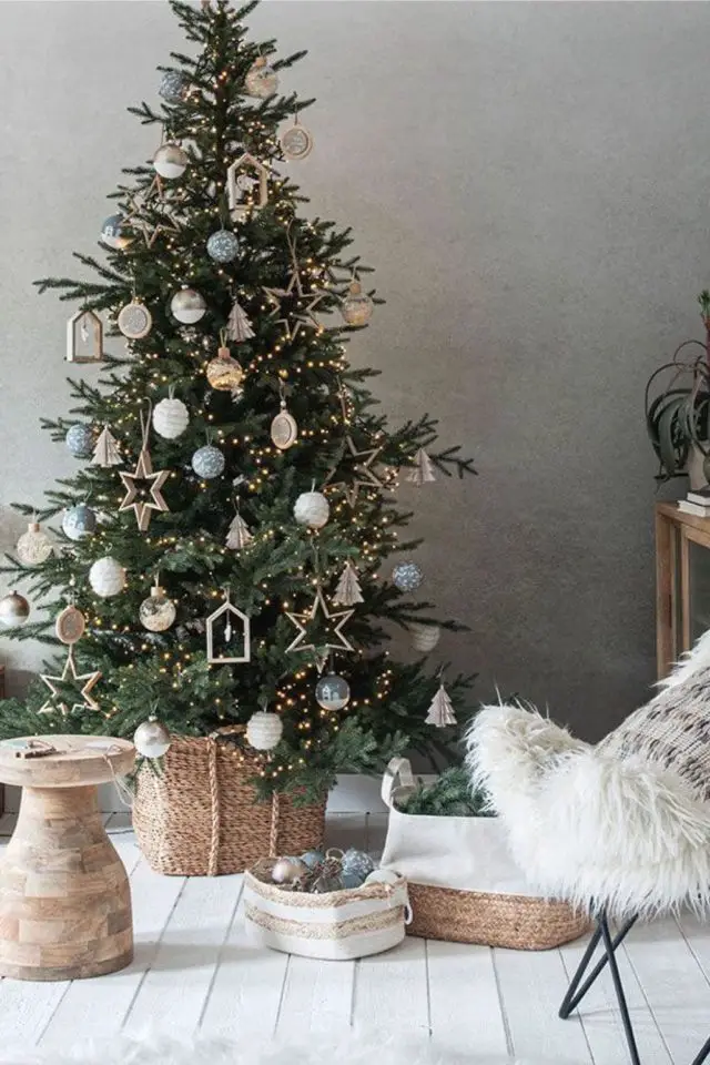 deco sapin noel 2023 2024 moyen modèle blanc bois kraft scandi