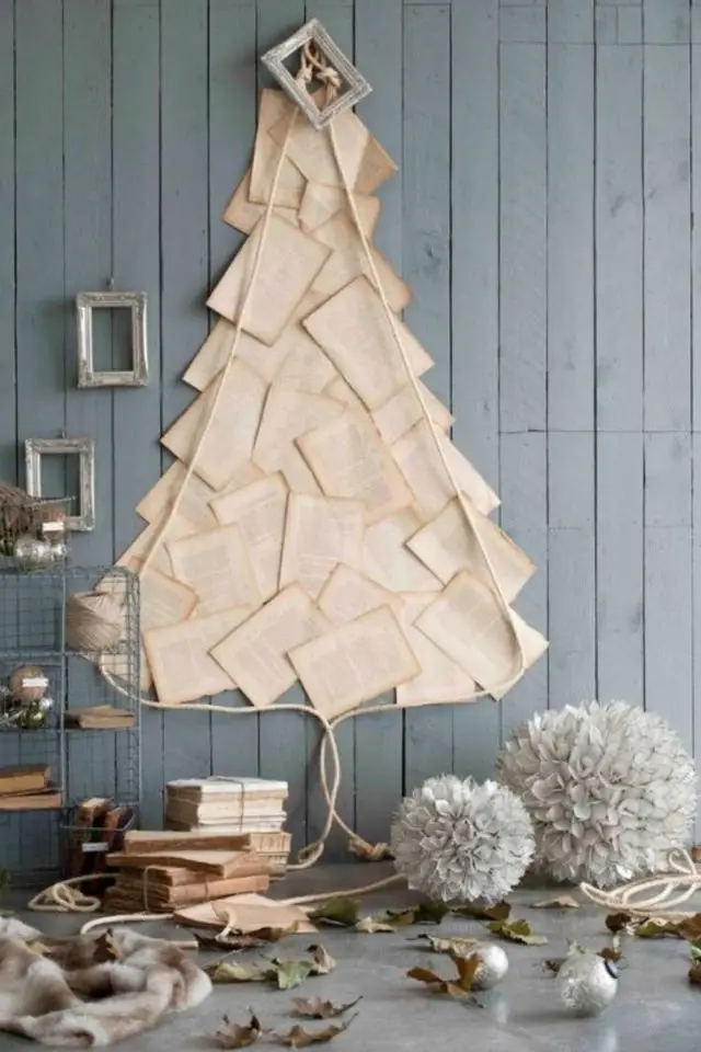 J'aime vraiment la récup' pour les fêtes et je vous propose un nouvel exemple de sapin réalisés avec des pages de vieux livres. Une déco murale éphémère qui me parle bien et qui est super rapide à mettre en oeuvre. Avec un peu de patafix, cela n'abime pas votre mur et c'est parfait quand on est locataire par exemple.