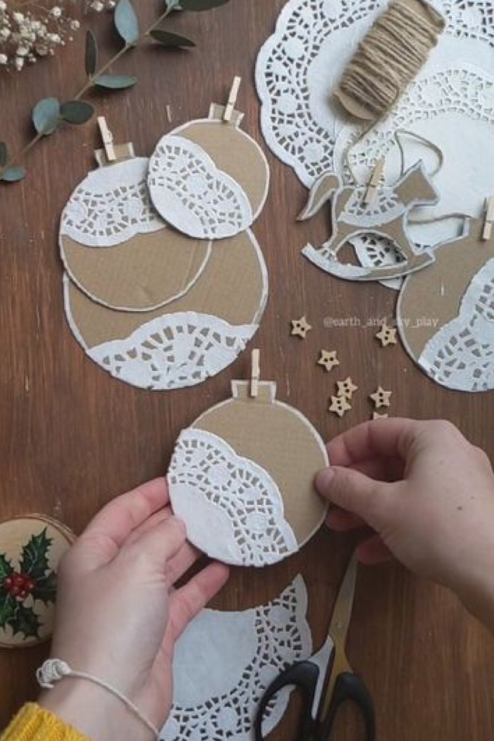 01 • Boules de noël en carton customisée avec des napperons en papier