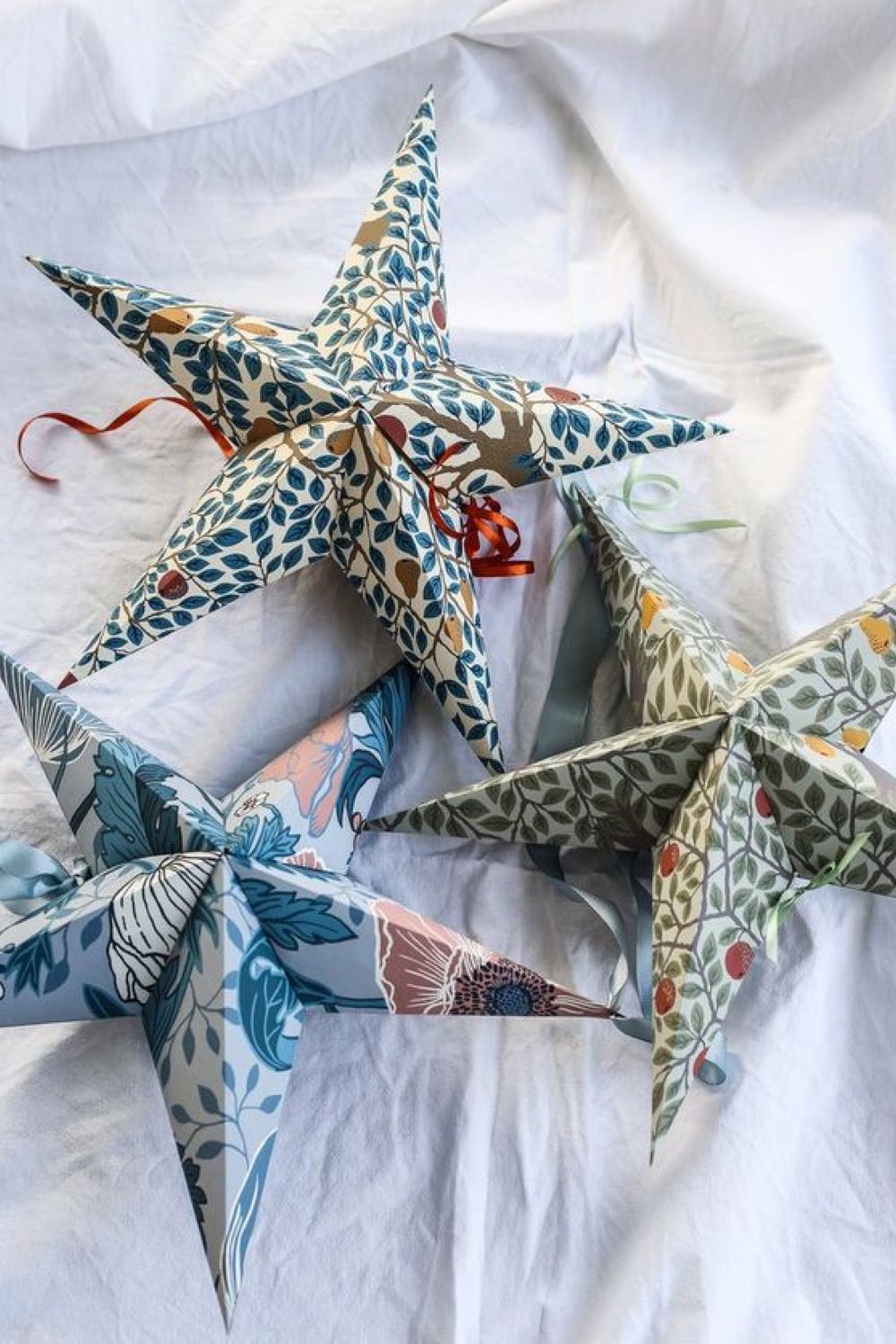 Selon le projet choisi, ce n'est pas le même papier. Réaliser de petites maisons pour créer un village de noël peut se faire avec du papier cartonné blanc. Pour les papiers à motifs, je vous conseille de choisir des papiers dédiés au scrapbooking qui sont eux aussi assez épais. Vous verrez dans la suite qu'il y a de grandes étoiles à motif et dans ce cas, il est préférable de choisir du papier peint intissé (qui est plus épais qu'un papier peint classique). Pour tout ce qui est carton, je vous invite à faire preuve de récup'. Enfin, il y a le papier kraft qui se trouve en rouleau ou en sachet.