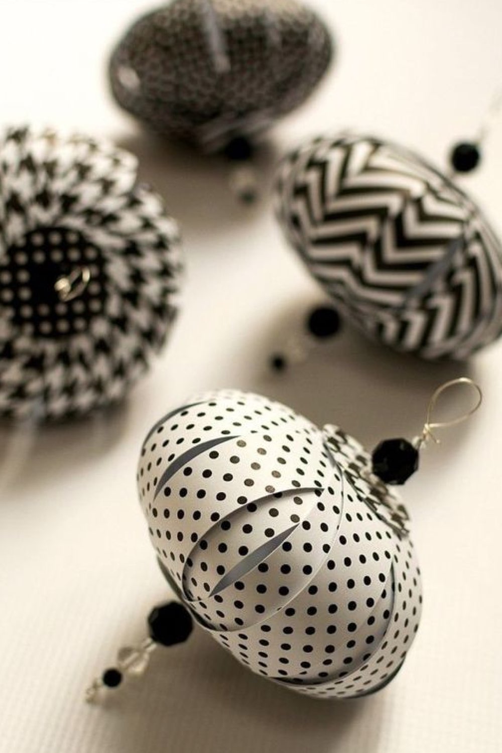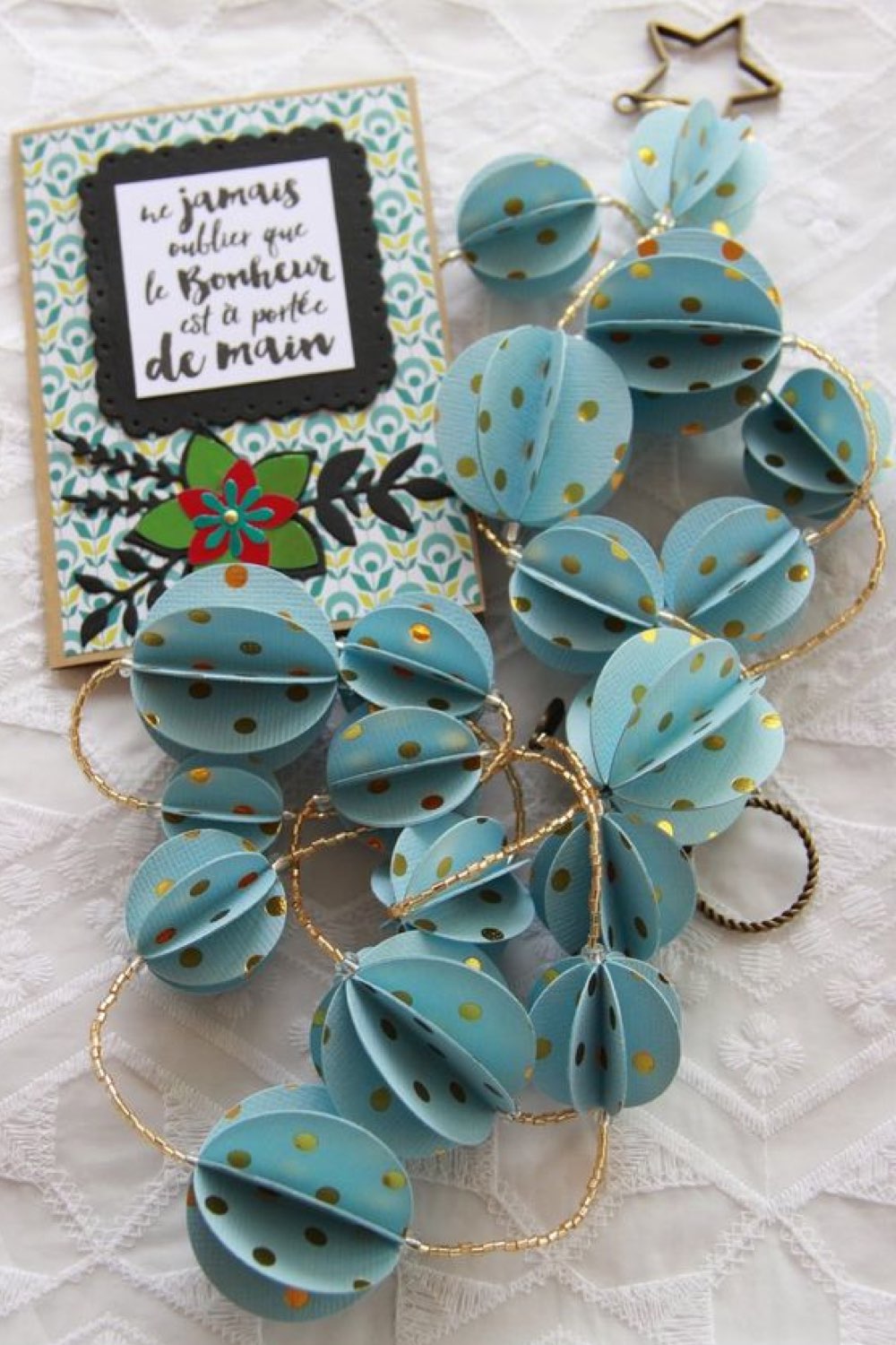 05 • Des boules de noël confectionnées avec du papier pour scrapbooking