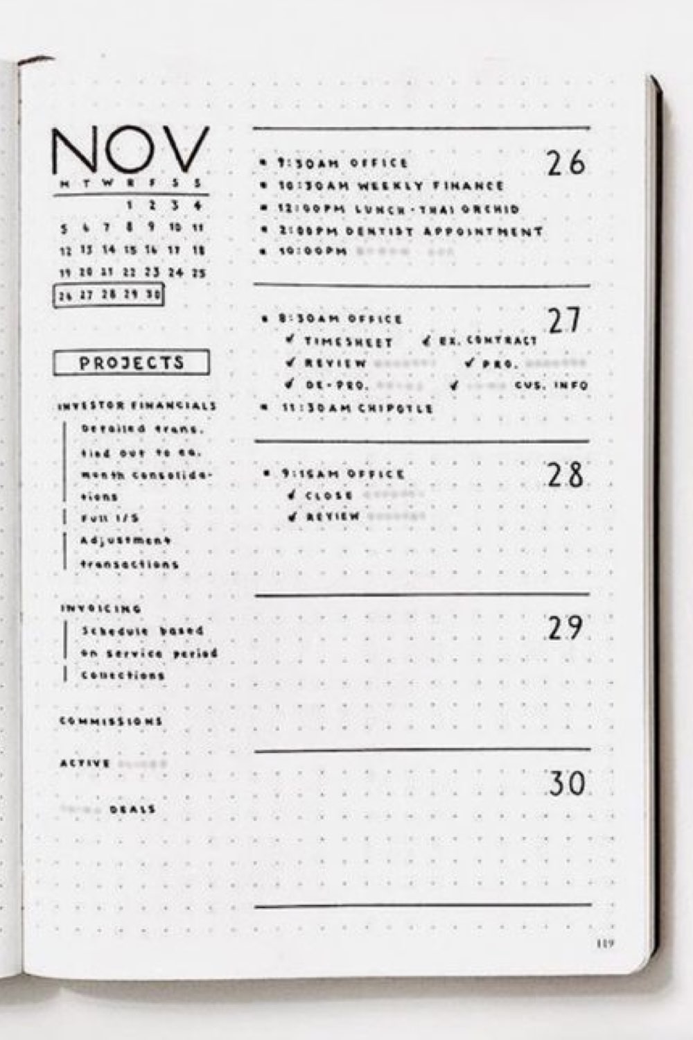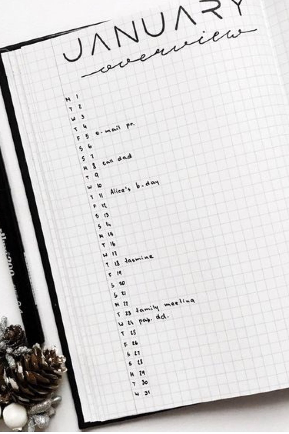 debuter bullet journal conseils agenda mensuel page minimaliste gain de temps