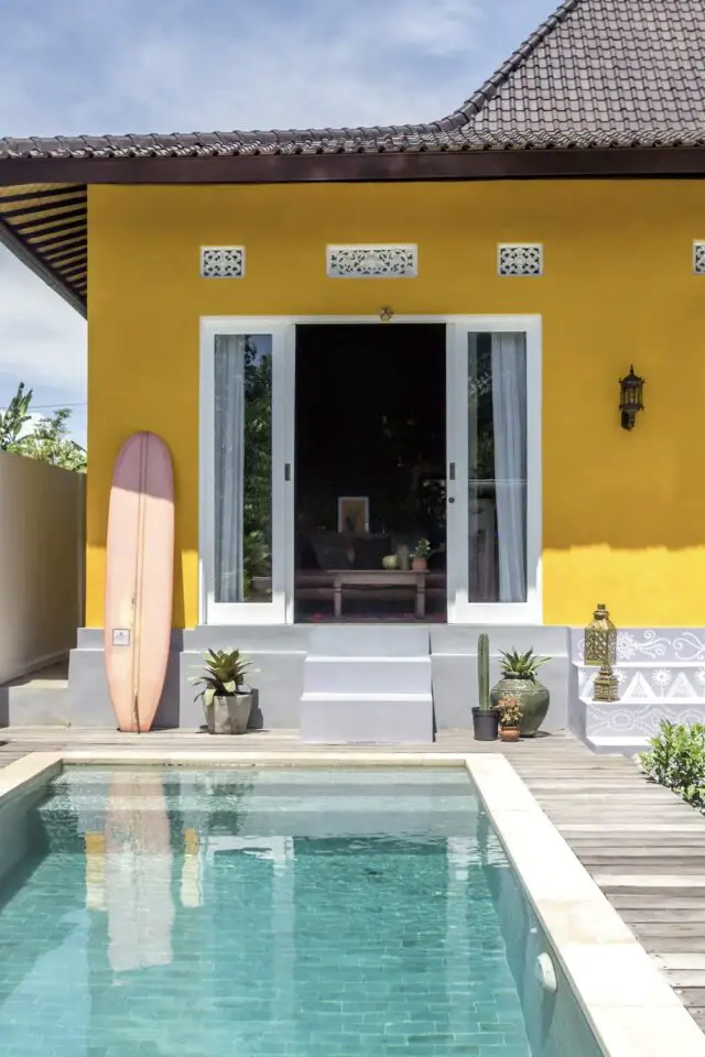 Une maison de 3 chambres avec piscine dans un village de surfeur - cela pourrait déjà faire rêver pas mal de monde. Et c'est encore plus vrai quand on découvre l'intérieur comme l'extérieur. Cette maison est étonnante à plus d'un titre. Elle est certes située sur l'île de Bali (en Indonésie), elle a été décorée dans un style mexicain moderne. Si vous cherchez des idées pour décorer l'intérieur de votre maison ou votre jardin, vous devriez en trouver dans la suite de cet article!