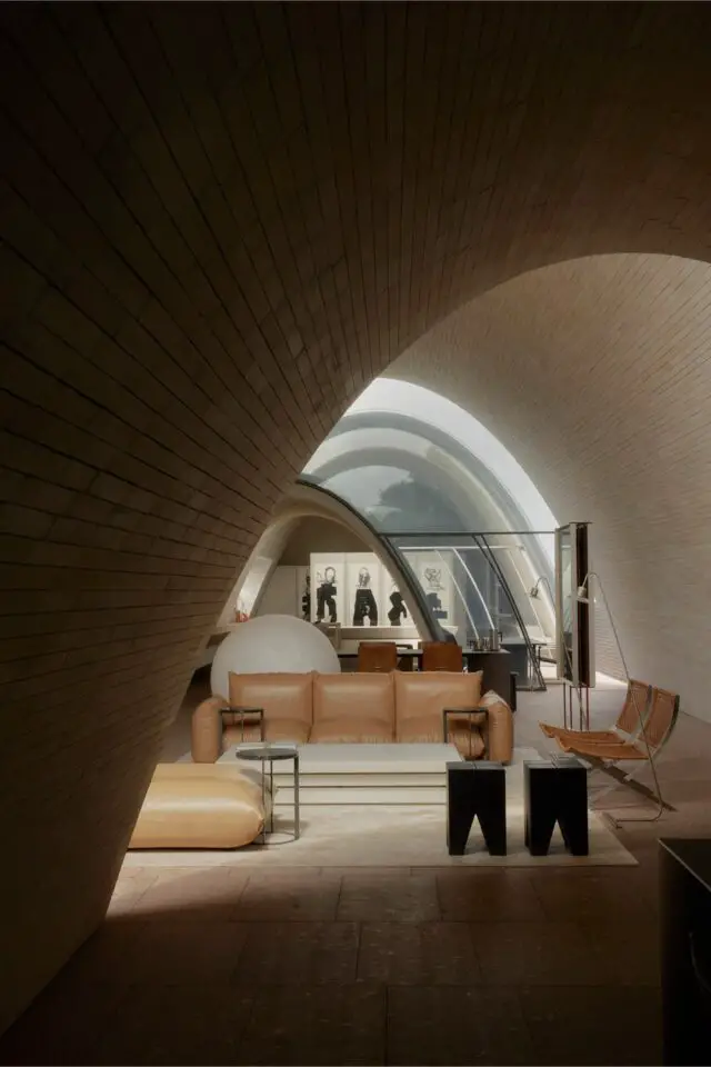 J'avoue, l'adjectif spéluncal n'est pas commun... Enfin, perso, je l'utilise rarement au quotidien. Spéluncal est ce qui est relatif aux grottes. On peut y voir la même racine que dans spéléologie. Je ne vous emmène pas sous terre mais en voyant l'intérieur de ce logement, j'ai eu l'impression de voir une certaine forme de grotte: les courbes, les espaces qui laissent voir l'extérieur, les briquettes couleur pierre. Le temps de cette visite déco hors norme, on oublie que l'on est en ville.