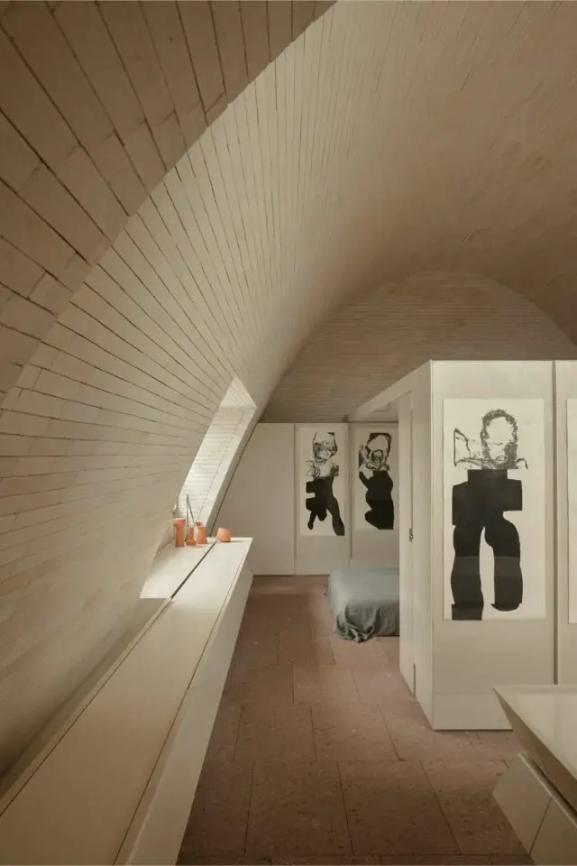 Je serai incapable de vous dire si je m'imagine un jour vivre et apprécier de vivre dans un intérieur comme celui-ci. C'est plus nuancé. Il y a un parti-prix terriblement minimaliste qui est équilibré par la géométrie des espaces. Les courbes des murs et des plafonds, l'enchevêtrement d'espaces, les jeux d'ombre et de lumière, la disparition visuelle de certaines cloisons extérieures...