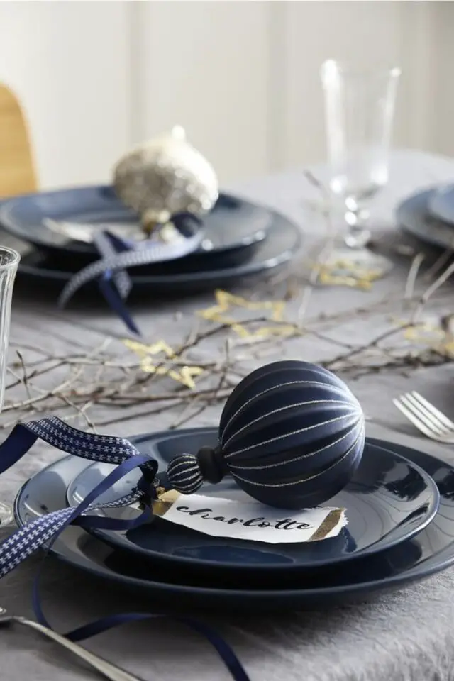 Le bleu peut s'inviter dans toutes les facettes de votre déco de noël. Néanmoins, je trouve que cette couleur sied parfaitement au sapin et à la décoration de table. Pour le sapin, la douceur relative au bleu est intéressante. Elle offre une touche cosy. Pour la table, qu'on cherche souvent à rendre élégante, les bleus sourds sont parfaits. Vaisselle, nappe ou chemin de table, marque-places, verres... Rien de plus simple que de décliner cette couleur pour le repas du réveillon.