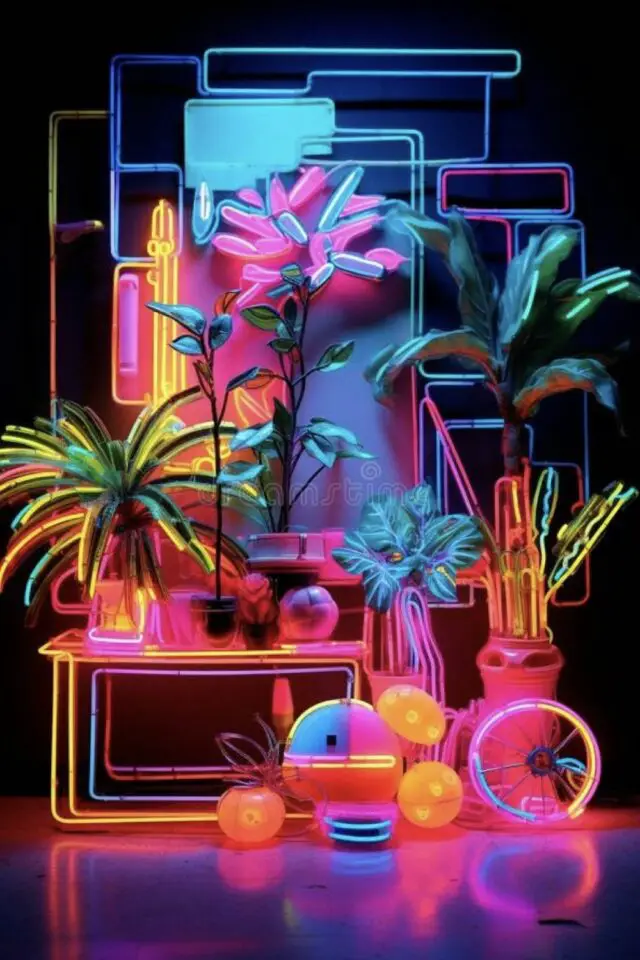 Le néon ici ce n'est pas le luminaire moche de bureau qui est tout de suite moins festif. Pour faire la fête, le néon peut être sous 2 formes essentiellement: le néon accroché au mur qui s'inspire des enseignes de magasin ou les petits tubes fluorescents. L'idée est de créer une lumière colorée dans le noir. Ce n'est pas l'idéal pour un repas à table (à moins de vouloir manger à l'aveugle) mais c'est parfait pour danser et insuffler une ambiance festive dans une pièce. On pousse les meubles, on éteint les lumières et surtout on prévoit une bonne playlist qui emmènera vos convives au bout de la nuit.