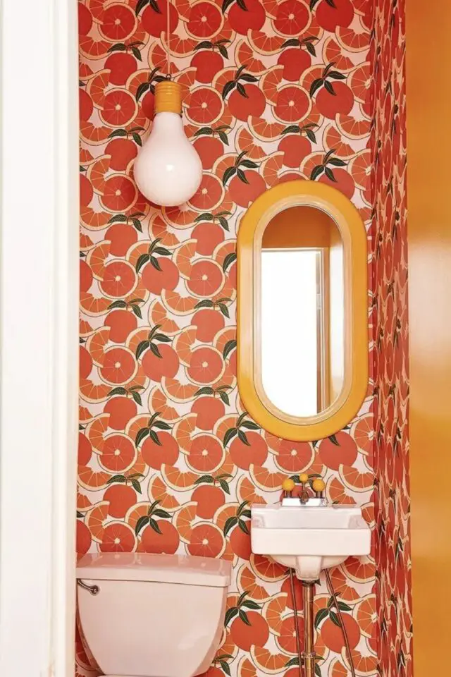 Chez Wellpapers, plusieurs modèles de papiers peints associent le jaune et le orange: Nº350 : Papier peint - Ambiance florissante, Nº467 : Papier Peint - Cadre ondulé (très vintage), Nº534 : Papier Peint - Combinaison Géométrique, Nº328 : Papier Peint - Petit soleil (existe aussi uniquement en jaune), Fresque Colorée.