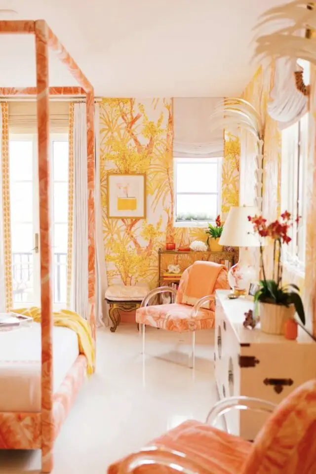 Ce que l'on ressent vis-à-vis d'une couleur va nous aider à utiliser la bonne couleur dans la bonne proportion dans un espace. Plus bas dans cet article, je vais évoquer cette association de couleur dans les pièces de vie. Cependant, je tenais à parler de l'utilisation du combo jaune et orange dans la chambre à coucher.