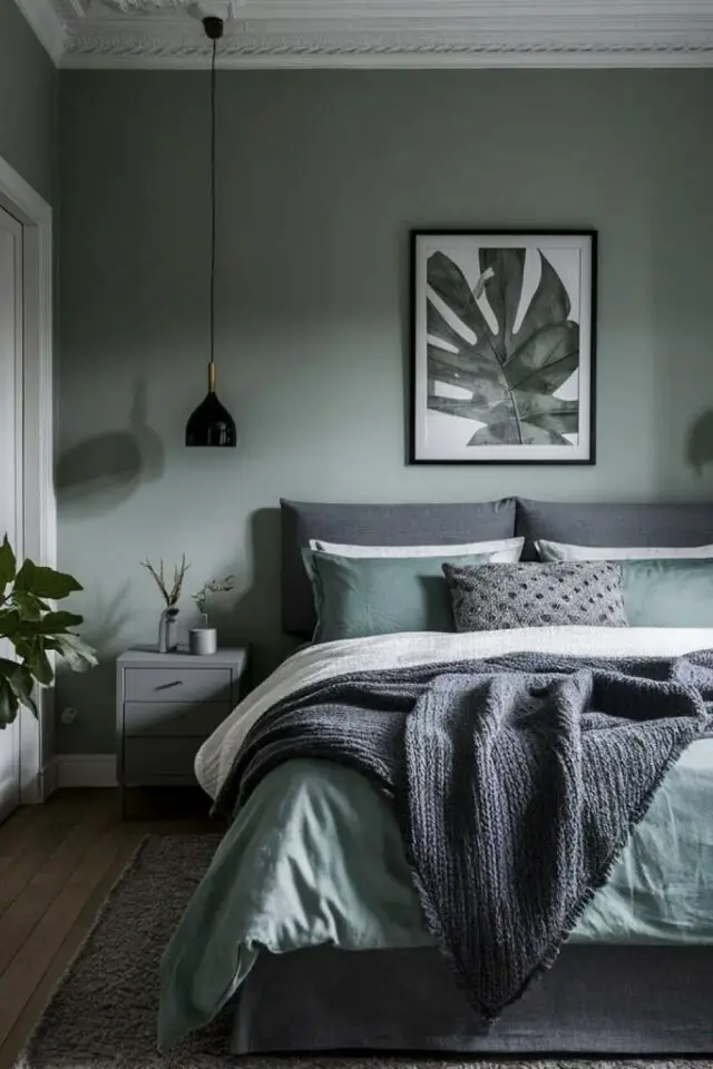 Déco murale en vert et gris pour la chambre d'adulte