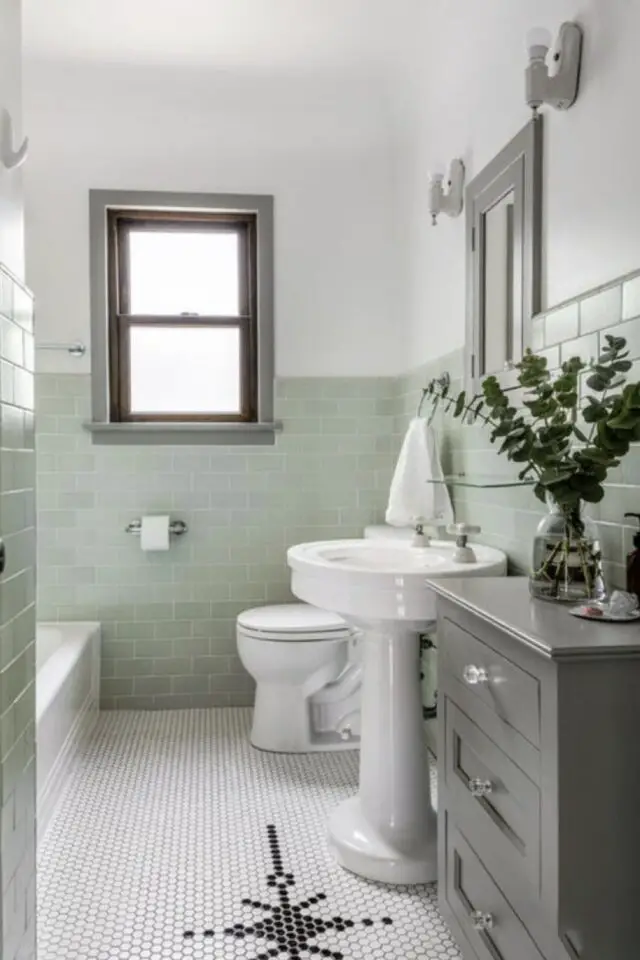 Combo vert et gris pour personnaliser la salle de bain