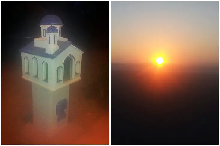 Que dire de plus sur cette île? Le soleil se couche très vite et tôt. A 20h30 (heure locale, soit 19h30 en France), le soleil est en train de se coucher. Il descend très vite dans le ciel. Il faut compter 10 minutes, mais c'est un spectacle vraiment très joli à voir, d'autant plus qu'il se couchait derrière les côtes / montagnes turques. La Turquie est plus proche de l'île de Rhodes que l'Angleterre de la France, pour vous donner un ordre de grandeur.