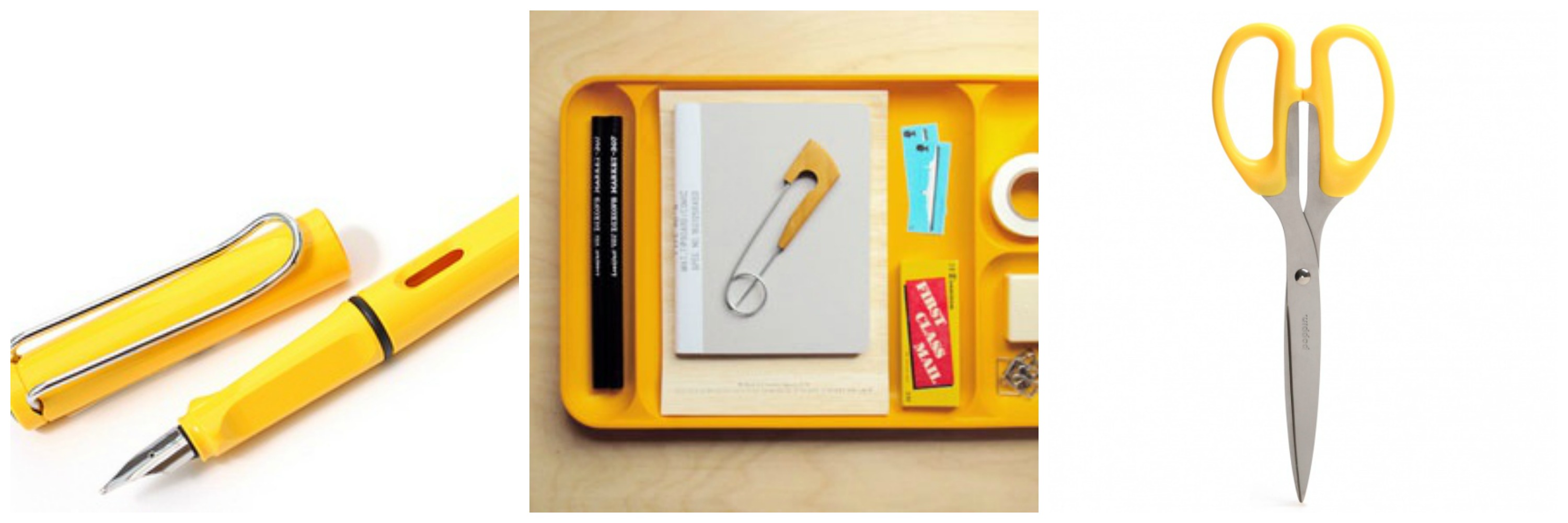 La rentrée ce n'est pas forcément synonyme de travail - Oui, oui, je me rends compte de ce que j'écris! La rentrée c'est l'occasion de se faire plaisir et de se lâcher sur les petites choses que nos hommes trouvent inutiles: stylo, cahier, crayon de papier, trombones colorés, stylo plume, masking tape... Aujourd'hui, je vous propose quelques sélections par couleur de jolies choses qui ne servent à rien mais que l'on aime!