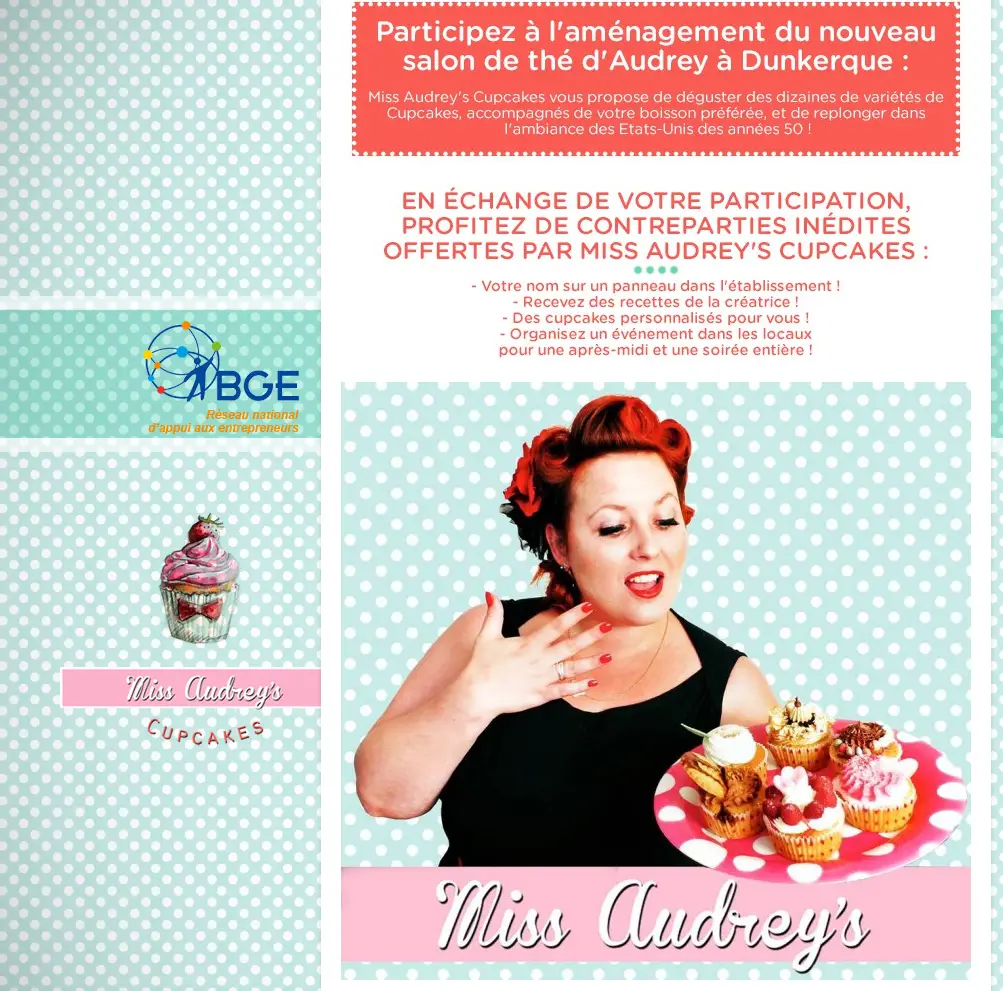 Dans un prochain article, je vous montrerai à quoi ressemble ce salon de thé et par la même occasion mon travail. Mais, il faudra encore patienter un peu. Il y a encore 3 ou 4 bricoles à terminer avant que vous ne puissiez voir ce lieu si différent de ce que l'on trouve sur Dunkerque. Aujourd'hui, j'ai un autre message à faire passer au nom d'Audrey qui n'est pas au courant encore que je lui écris cet article. Audrey et son projet ont été sélectionné par My Major Compagny pour bénéficier d'un coup de pouce. Pareil, ce coup-là, j'ai aussi eu le droit à un coup de fil... Passons! Pour finaliser sa décoration et l'aménagement de son local, vous pouvez être contributeur du projet. Et contre un don de votre part, vous pouvez, même si vous n'êtes pas du coin, gouter aux délicieux cupackes d'Audrey. Sur sa page de My Major Compagny vous aurez tous les éléments de réponses à propos du projet et des contreparties proposées. Je vous laisse les découvrir et je n'ai pas envie de tout reprendre vu que tout est bien expliqué sur le site!