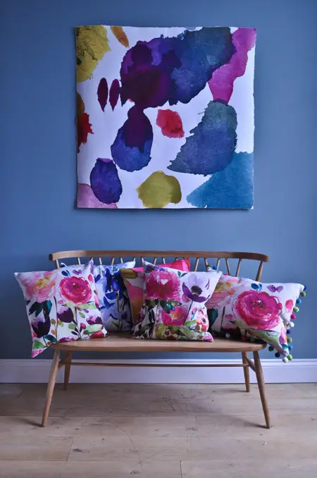 J'ai été séduite par la fraicheur qui se dégage des rideaux, coussins et autres tapis. J'ai aussi aimé l'impression que le textile est peint à l'aquarelle. Habituellement, je ne suis pas une grande fan des tissus imprimés, mais cette fois-ci je suis convaincue. Il y a un air de compagne douce et réconfortante chez Bluebellgray, qui ne me laisse pas indifférente. Et quand je parle de campagne, je parle plus d'une campagne anglo-saxonne... Bref, je vous laisse voir en image les jolies productions de cette enseigne!