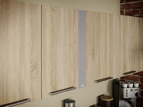 Autre innovation: Music In, pour cuisiner tout en écoutant de la musique. Ici, Hygena propose une qualité de son incomparable et une ambiance unique dans votre espace de vie. Fini, les câbles qui traversent le plan de travail, la radio posée sur le frigo. Tout est mis en œuvre pour que votre système de son soit intégré dans votre implantation.