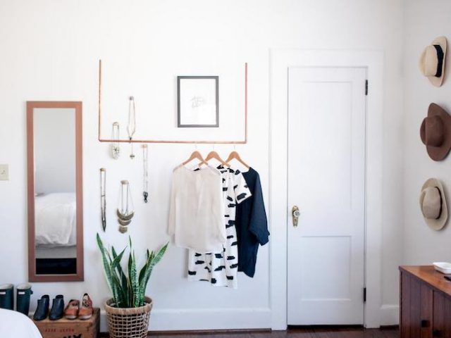 Là aussi, je vais éviter de rentrer dans le cliché de la bonne femme. Je suis certaine qu'il existe des femmes qui ont autant de vêtements que les hommes et qui n'ont pas besoin de 3 penderies et 4 placards pour ranger toutes leurs affaires. N'empêche qu'il est possible d'aménager un coin de la chambre, même tout petit avec une penderie. Certes les armoires vendues dans le commerces ont peu de chance de rentrer dans cet espace, mais rien de vous empêche de créer vous-même l'aménagement.