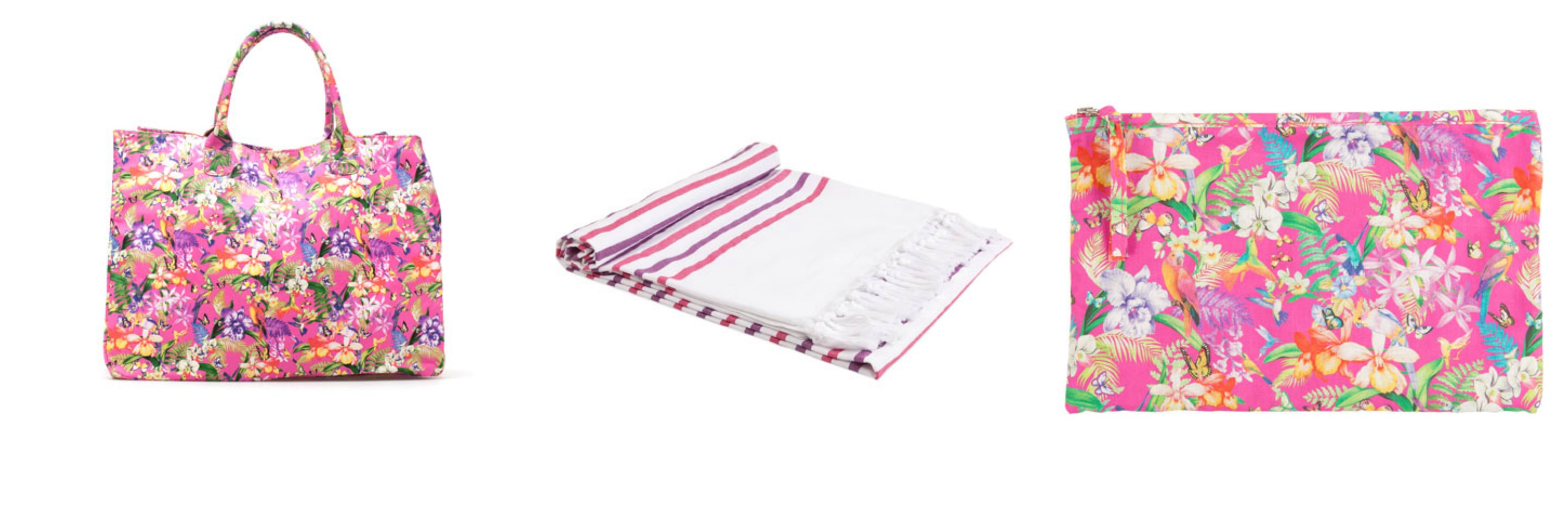 Sac de plage de tropical rose / Serviette de plage Rayures & Franges / Trousse tropical