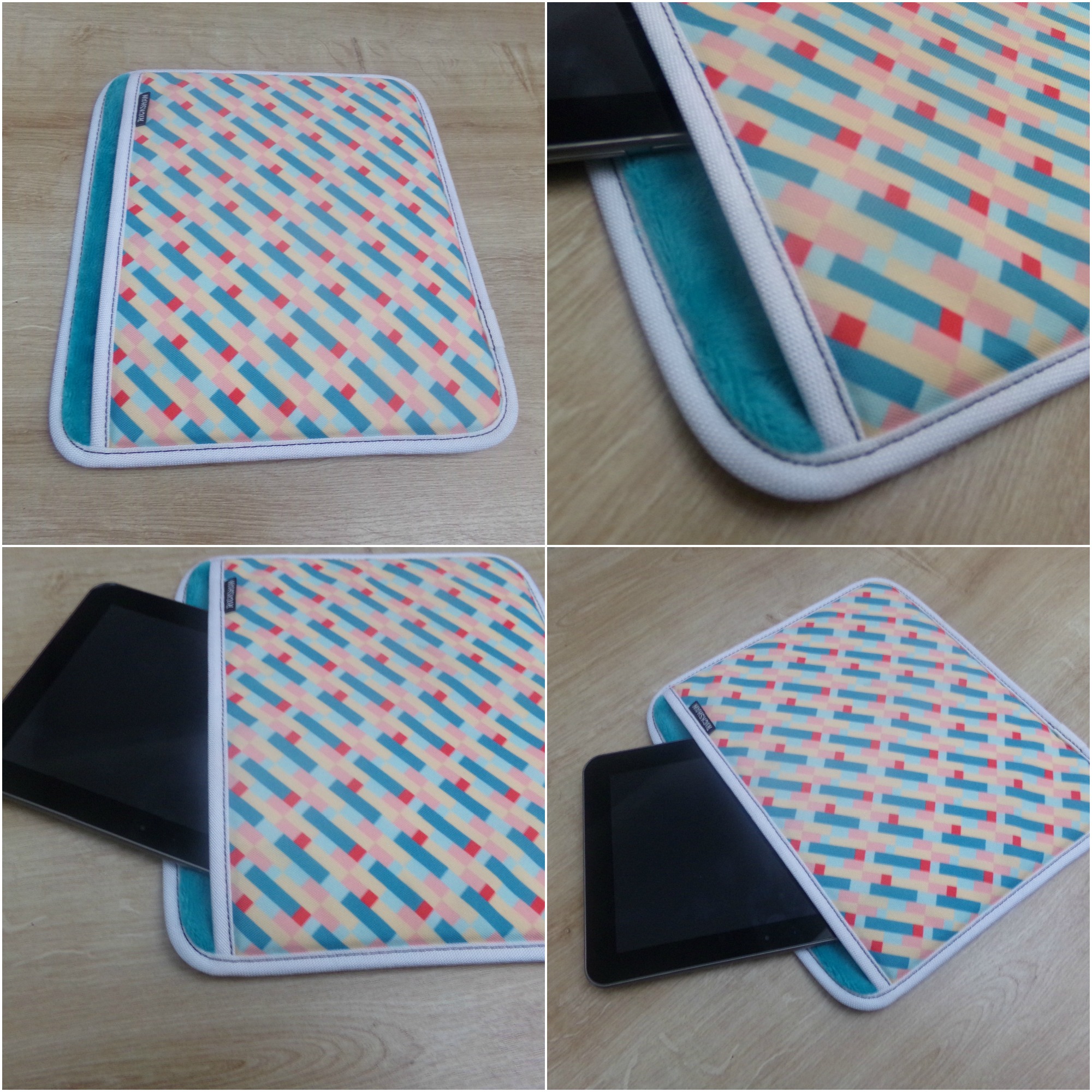 J'ai aussi eu la chance de recevoir un de leurs produits dans ma boite aux lettres. En ce moment, je n'ai pas besoin d'objets personnalisés, donc mon choix s'est porté sur quelque chose d'utile et qui était déjà tout fait. J'avais besoin d'une housse pour ma tablette. Et j'ai craqué sur une pochette aux motifs géométriques. Grande surprise quand j'ai reçu la housse: l'intérieur est fabuleusement doux... C'est le petit plus auquel je ne m'attendais pas.