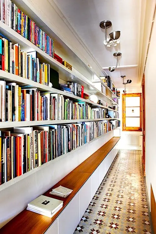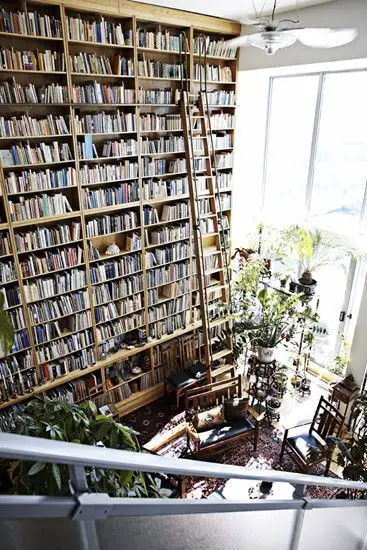Je ne sais pas jeter un livre. C'est juste impossible d'en mettre un à la poubelle. Ca ne me dérange pas de les vendre, de les donner, de les prêter... Mais je ne sais pas les jeter. A la maison, il y a des livres presque partout. Il y a des étagères avec des livres, des bibliothèques, des livres posés en piles sur les meubles. Ils font partie de notre quotidien. Toujours à la portée de la main. Mes livres de déco sont dans mon bureau pour la plupart. Mes livres de grammaires près du salon. Les livres de Chéri près du canapé. (Ce sont des livres relatifs à son boulot). J'aime les livres et j'aime les bibliothèques. (Il vaut mieux...) Je vous propose une série d'images qui devraient vous inspirer si vous avez le projet de créer une bibliothèque.