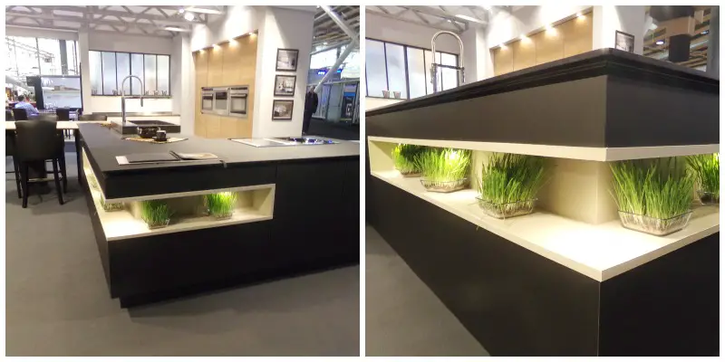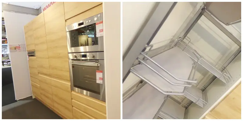 Ensuite j'ai fait le tour du salon. J'ai esquivé deux ou trois vendeurs de cuisine, un vendeur de pompe à chaleur qui m'a fait la même blague qu'il y a deux ans... Je me suis arrêtée sur deux stands de cuisine. Le 1er, c'était Oksab, un cuisiniste qui a commencé en ligne et qui a ouvert il y a quelques mois un showroom près de Lille. C'était un petit stand, mais les rangements pratiques m'ont plu. Je suis aussi passée par le stand de Lille Cuisine. Je me suis arrêtée parce qu'il avait une cuisine de présentation qui valait vraiment le coup d’œil. En revanche, l'entretien avec les deux commerciaux était un peu d'une autre dimension...