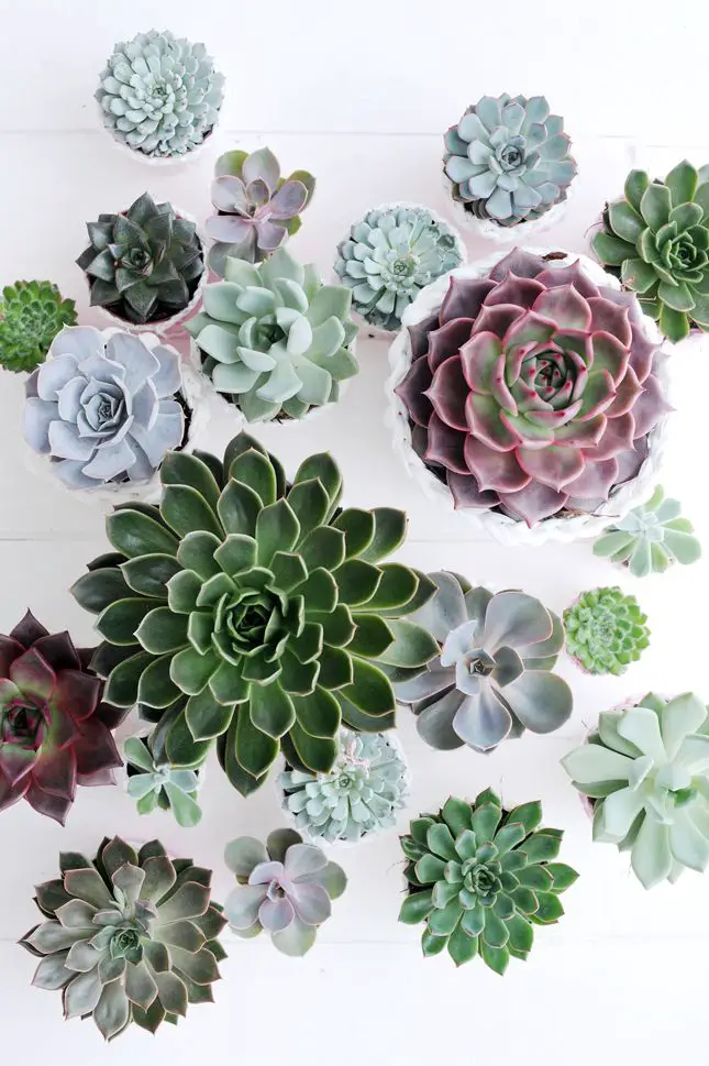 Les succulentes sont des plantes qui n'ont pas besoin de beaucoup d'eau pour vivre. Je les aime beaucoup aussi parce qu'elles sont petites et qu'il y en a de nombreuses variétés. Les feuilles des succulentes sont aussi très graphiques. Je les trouve très chaleureuses aussi.