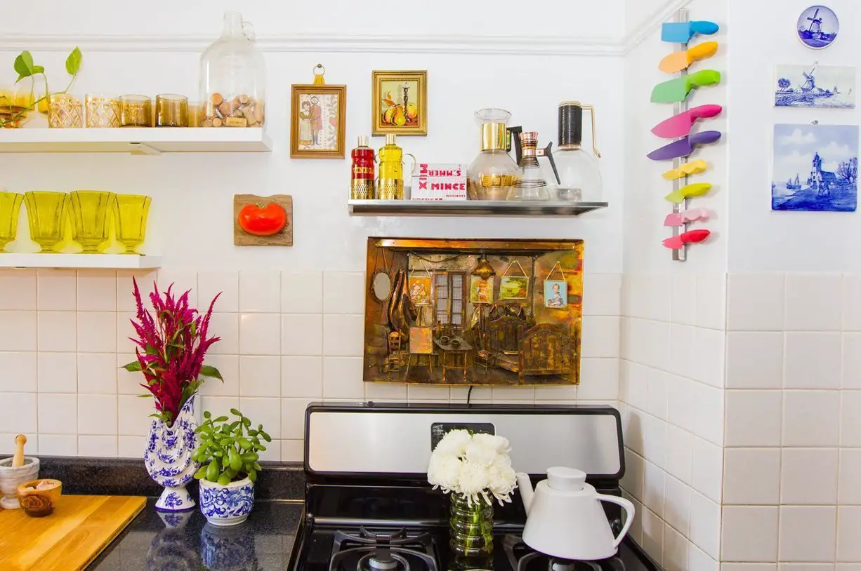 On part outre Atlantique pour commencer la semaine pour découvrir l'appartement d'une jeune femme. La décoration de cet appartement ne plaira sans doute pas à tout le monde. Perso, j'aime ce qu'elle en a fait. C'est très très féminin (oui deux très, voire peut-être même un troisième très). Le doré, la dorure sont omniprésent. Mais l'ensemble en général est très harmonieux. Il y a un doux mélange entre le mobilier vintage dans son jus et des éléments colorés et graphiques. Je ne vous en dit pas plus et je vous laisse en compagnie des photos qui vous parleront bien plus!