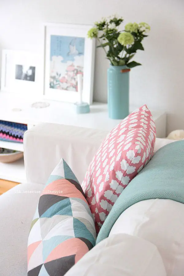 Le bleu peut être aussi pastel. Avec modération, le bleu dragée s'associe parfaitement avec des nuances douces de blanc et de rose. Attention toutefois à ne pas transformer votre pièce en bonbonnière!