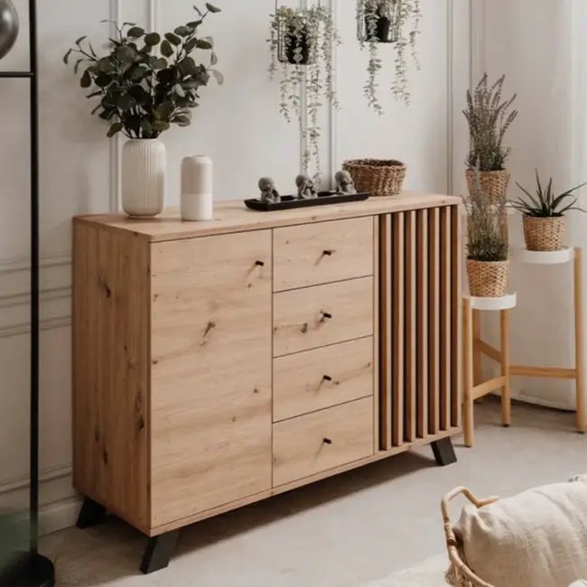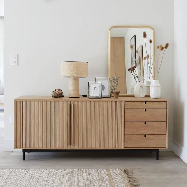 Si vous avez une table en bois, essayez de trouver une essence de bois similaire pour le buffet. Si votre salle à manger est dans un style particulier (vintage, industriel...), il est préférable de choisir un meuble qui s'intègre facilement dans votre déco. Les pieds, les boutons de portes, le design des portes et tiroirs vont beaucoup contribuer à l'apparence globale de votre meuble. Prêtez donc une attention toute partxiuclière à ces détails.