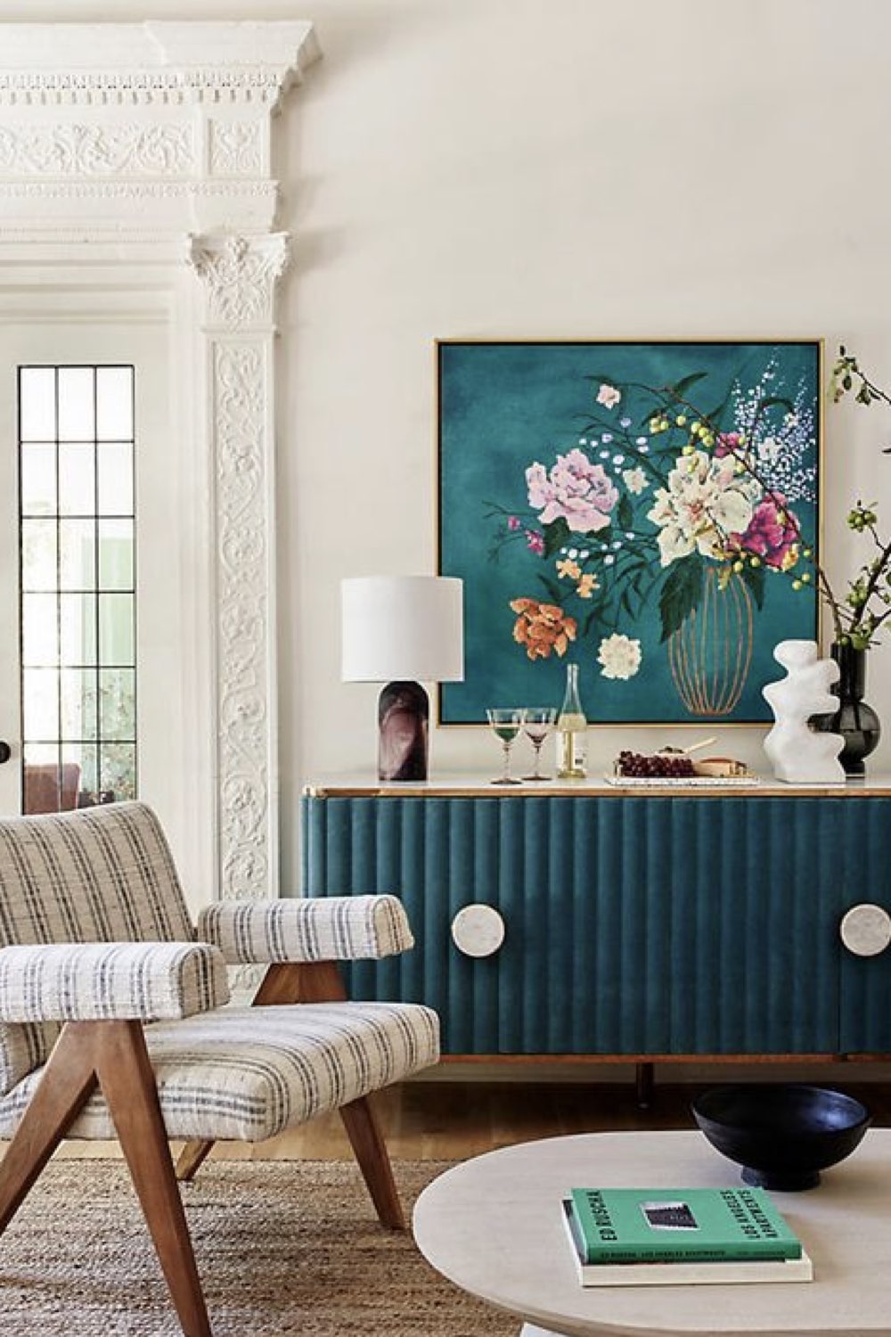Dans la salle à manger, on parle souvent de la table et des chaises. En revanche, il est moins souvent question du buffet qui meuble cette pièce destinée au repas. Pourtant, il est utile. Il est parfois aussi imposant et il compose l'harmonie décorative de la pièce. J'ai eu une période où je ne voulais absolument pas de buffet chez moi. Il faut dire que j'étais traumatisée par le meuble colossal qui était chez mes parents. (Et en plus de prendre de la place, il n'était pas très joli...) Depuis, les choses ont changé!