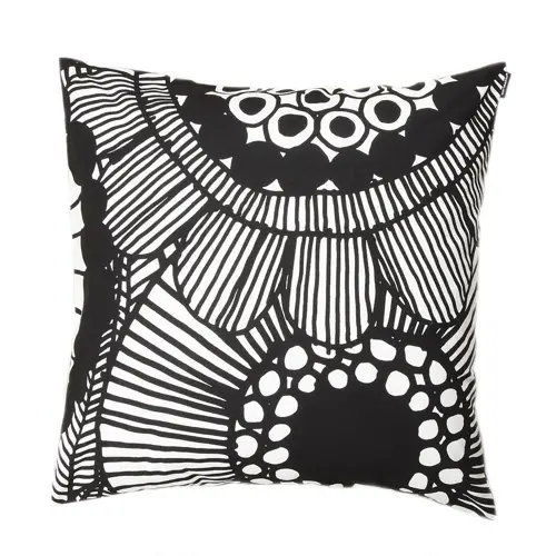 Les motifs simples et colorés sont une composante du style scandinave. On retrouve des formes simples et répétitives imprimées sur le textile. Cela permet de jouer entre les unis et les motifs et apporter une touche de couleur supplémentaire, un peu de dynamisme au canapé ou au fauteuil dans lequel on retrouve le coussin.