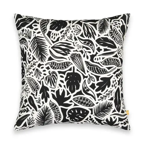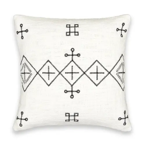 Coussin en coton recyclé tissé jacquard beige motifs écrus