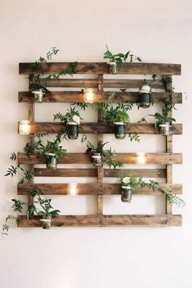Les palettes sur les murs, c'est super pratique pour exposer des petites choses, des petits objets. Ca habille un mur un peu fade, ça lui donne aussi du volume. Mais il y a aussi d'autres moyens d'utiliser les palettes sur un mur. On peut s'en servir comme lambris par exemple.