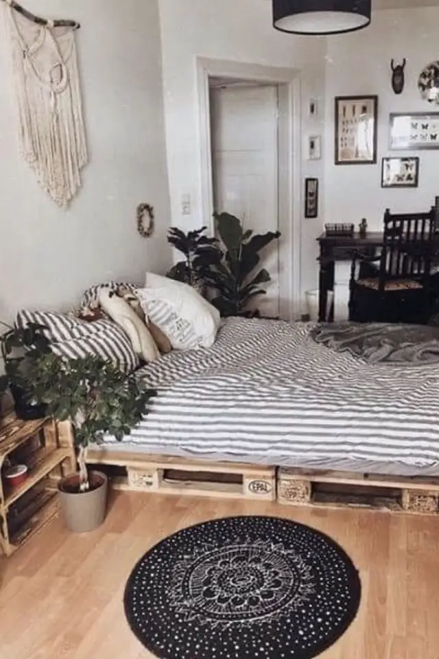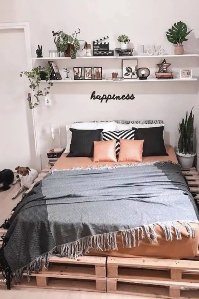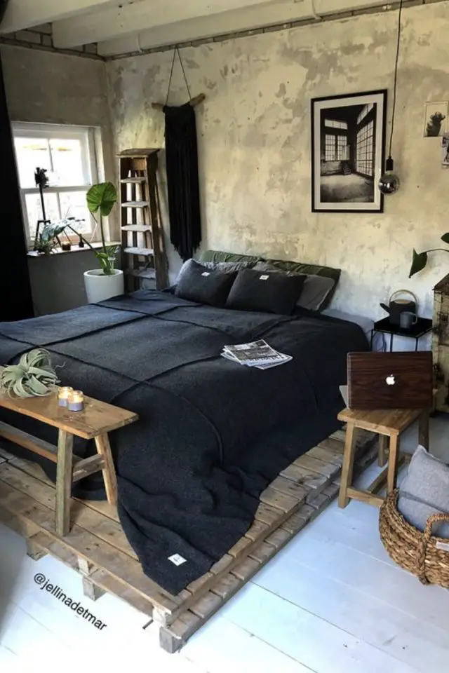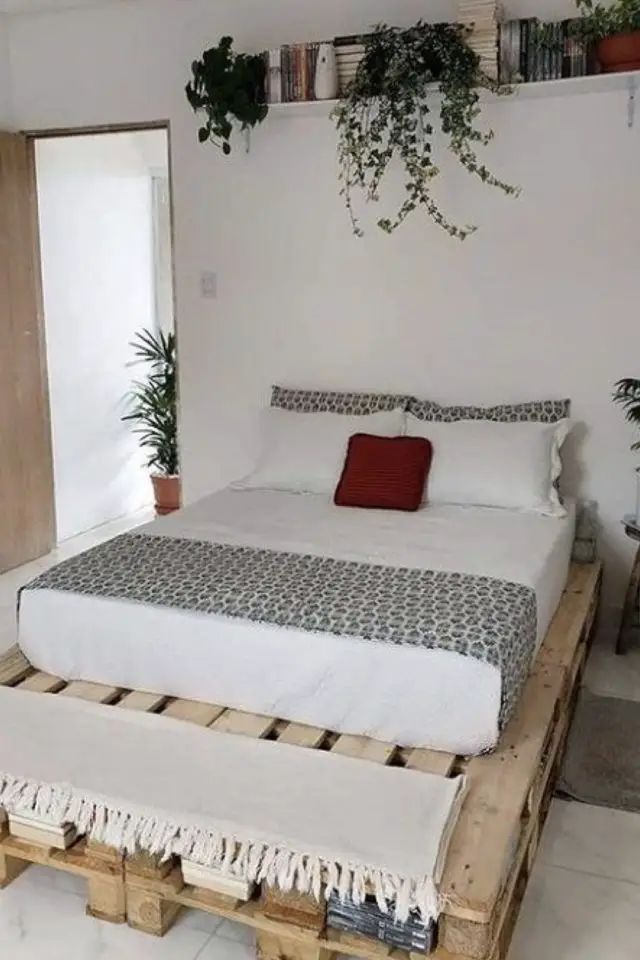 Après les murs et la tête de lit, il y a aussi la possibilité de créer un lit à partir de palettes. Perso, j'ai comme un doute sur la qualité du sommeil sur ce type d'installation... Rien ne vaut un vrai sommier. Cependant, il est possible d'intégrer le sommier à la structure de palettes!