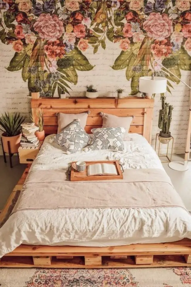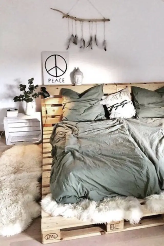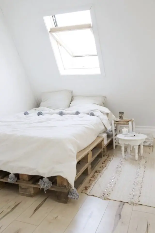 La tête de lit en palette, c'est ce qu'il y a de plus fréquent. Et pour lui donner un accent scandinave, il suffit de laisser les palettes dans leur jus (si le jus est bon...) ou de les poncer pour avoir un bois clair et propre.