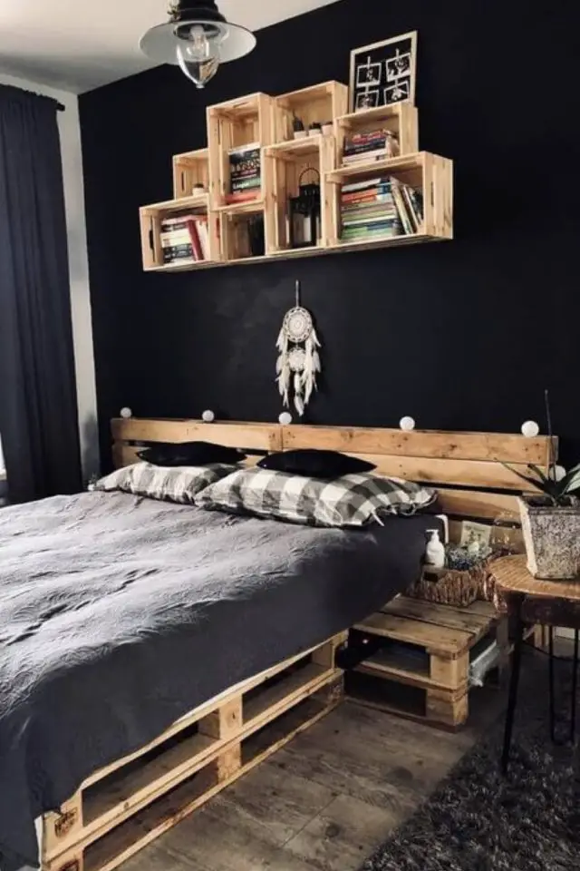 Ce qui est intéressant avec les palettes, c'est qu'on peut en faire ce que l'on veut, que ce soit pour la chambre parentale ou pour la chambre des enfants. Et si on ne veut pas un décor tout en palette, il y a aussi l'idée des cageots de fruits qui peuvent être détournés!