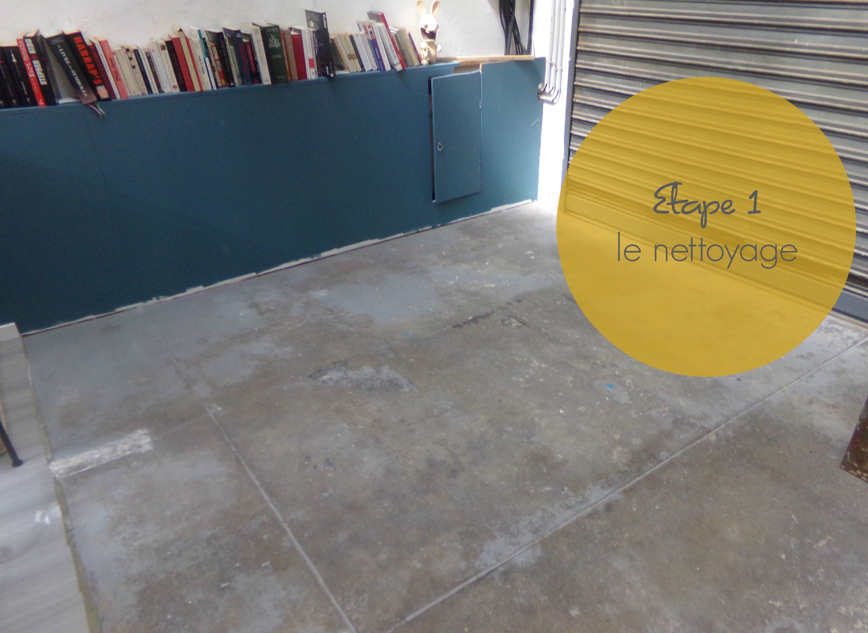 Après avoir débarrasser l'atelier des différentes meubles, on a passé un sacré coup d'aspirateur. C'est inutile de coller un revêtement sur un sol qui n'est pas propre et dépoussiéré, la colle n'adhérera pas sur le sol et vous risquez d'avoir des lames de parquet qui ne collent pas. Si comme moi vous envisagez de poser du parquet collé sur une dalle en béton, il faut veiller aussi à ce que le béton soit propre. Vous pouvez utiliser un shampoing acide pour béton, ce qui vous permettra de retirer la laitance mais aussi les éventuelles traces de colles qui pourraient se trouver sur votre béton. Notez qu'il faut utiliser le shampoing acide avec beaucoup de précaution. C'est acide, donc corrosif. (On ne fait pas ça en tongue, si vous voyez ce que je veux dire!)