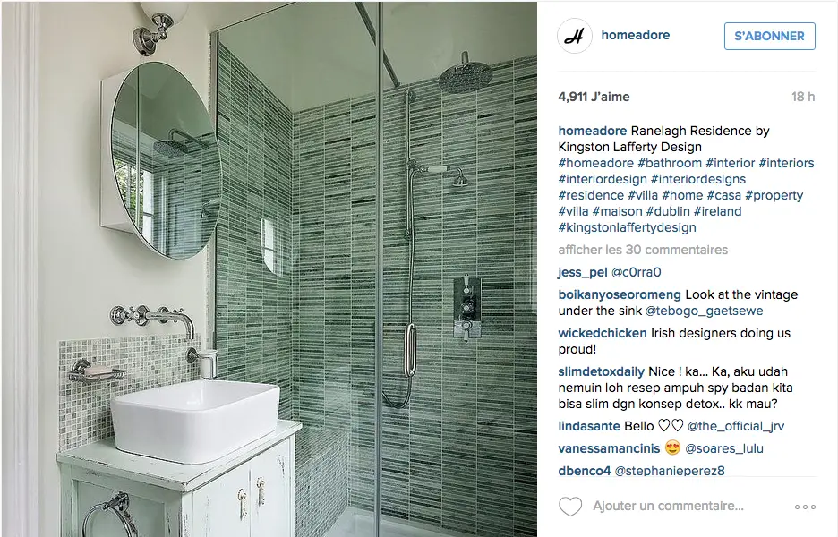 La salle de bain... Lieu de détente, lieu de réveil, lieu de jeu aussi pour les enfants. Comme toutes les pièces de la maison, on trouve de nombreuses photos de salle de bain sur Instagram. Il y en a des belles, comme dans un catalogue. Il y en a des vivantes, comme dans la vraie vie. Mais Instagram, c'est surtout un endroit sur le web qui nous donne un tas d'idées pour notre déco. Pour commencer la semaine, je vous propose de découvrir une sélection de salles de bain qui devrait vous inspirer!