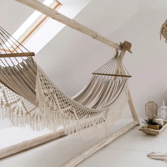 Par ailleurs, assurez-vous que le hamac supporte le poids souhaité, généralement entre 80 et 250 kg.