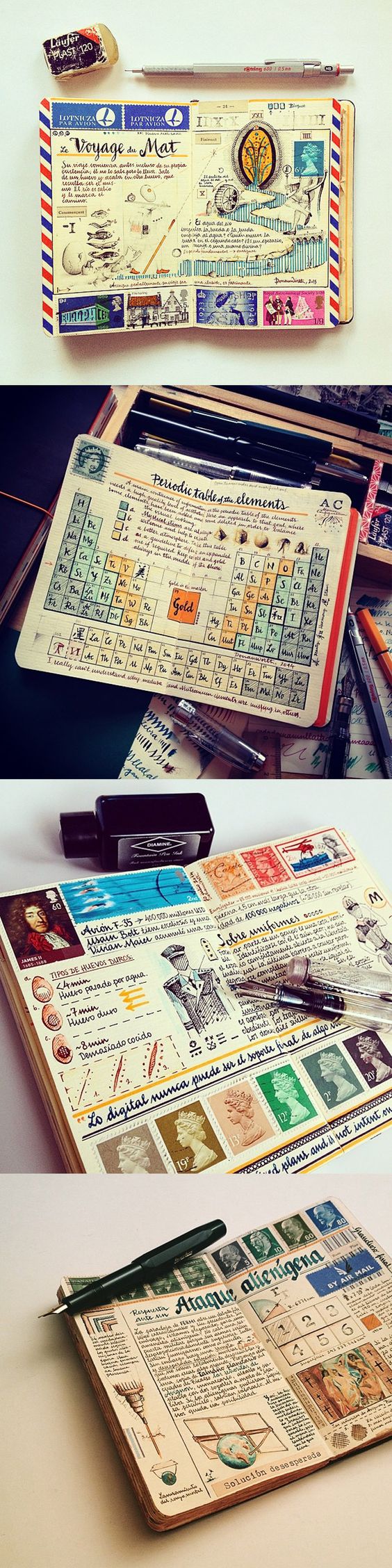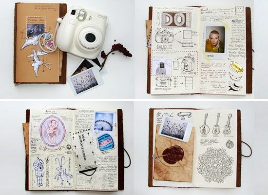 Ai-je besoin d'un carnet de voyage, alors qu'à proprement dit, je ne voyage pas? Alors que j'ai un super blog sur lequel je compte bien partager notre aventure? Ai-je besoin de tout noter alors que je ne vais probablement pas le relire? Je me connais aussi, je ne vais pas imprimer les photos que je vais faire. Me connaissant, mon journal de voyage ressemblera plus à une boite dans laquelle je vais laisser des tickets de bus, des petites choses glanées au fil des découvertes. Il y a plus de chances que j'ouvre une boite qu'un carnet... N'empêche que sur le web, on trouve des carnets de voyage vraiment très jolis. La preuve en image!